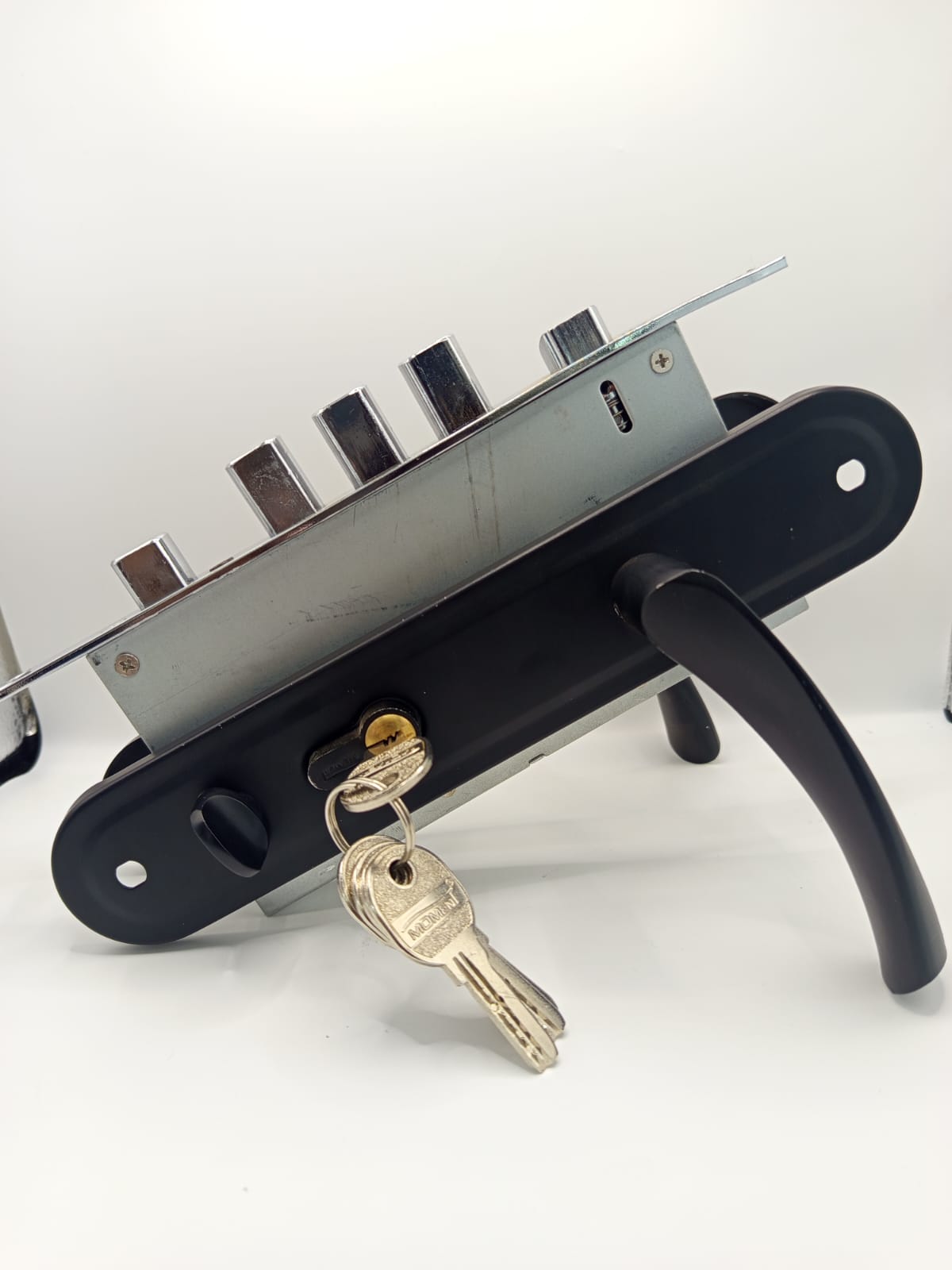 This durable black steel door lock is designed for maximum security and long-lasting performance. Crafted from high-quality steel, it features a strong lock body with multiple solid bolts that provide superior protection against forced entry. The lock comes with a sleek black matte finish that complements both modern and classic door designs. It includes precision-cut high-security keys, ensuring reliable and smooth operation every time. Perfect for both wooden and steel doors, this lock is ideal for residential and commercial use, combining strength, style, and functionality — exclusively available at Lock City.